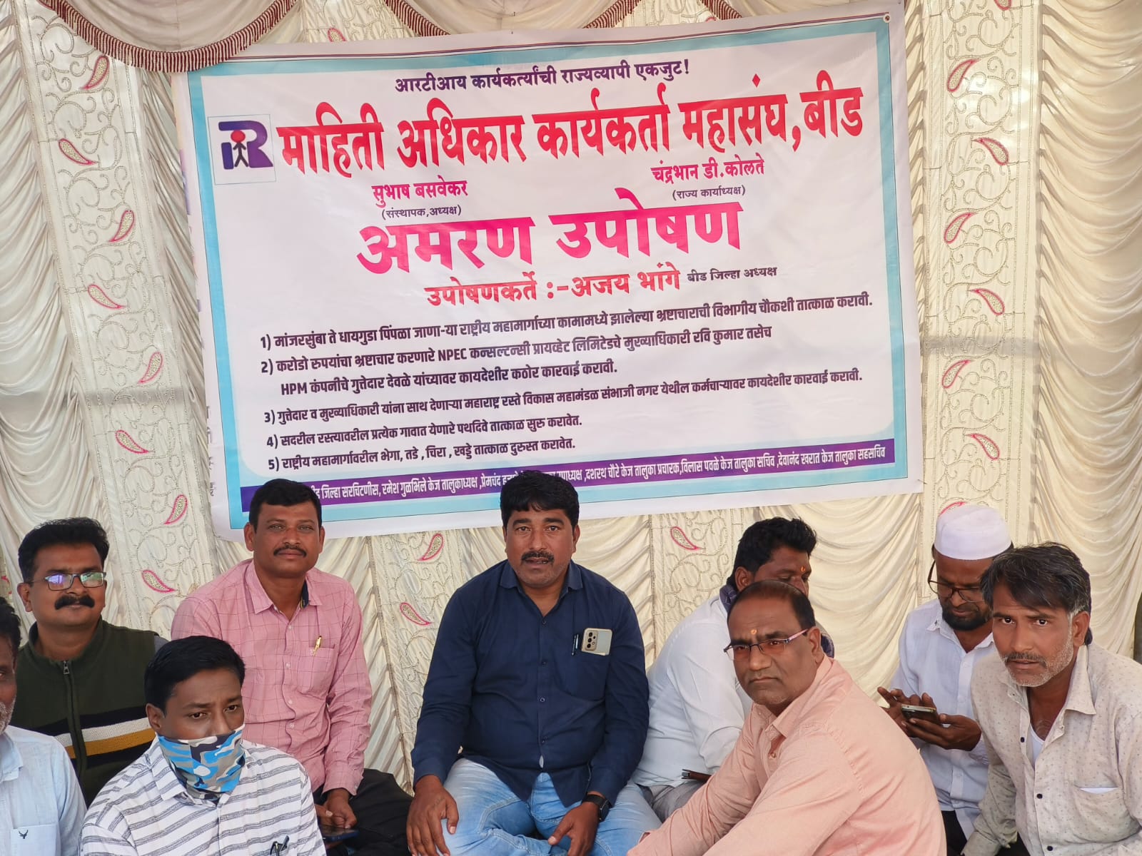 केज येथे सुरु असलेल्या बेमुदत आमरण उपोषणाला केजच्या माहिती अधिकार कार्यकर्त्याचा जाहीर पाठिंबा