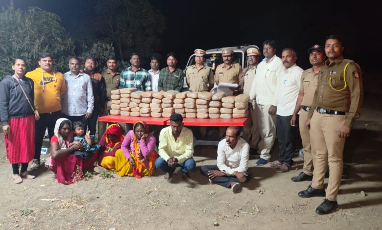 याबाबत अधिक माहिती अशी की, अंबाजोगाई -आडस रस्त्यावर आडस येथे बेकायदेशीररित्या व विनापरवाना चोरटी विक्री करण्याच्या उद्देशाने एका वाहनातून गांजा वाहतूक केली जात असल्याची माहिती पोलिसांना मिळाली. रात्री साडेदहा ते पहाटे साडेतीनच्या सुमारास पोलीस पथकाने पाठलाग करून कारवाई केली. या कारवाईत एक क्विंटल सतरा किलो गांजासह स्कार्पिओ गाडी, दोन मोबाईल व तीन महिलांसह पाच जणांना ताब्यात घेण्यात आले. ही कारवाई उपविभागीय पोलीस अधिक्षक कमलेश मीना, सहाय्यक पोलीस निरीक्षक देविदास वाघमोडे, पोलीस उपनिरीक्षक गोविंद बास्टे, प्रशांत मस्के, जमीर शेख, विकास चोपने, अशफाक इनामदार, नाना निंगुळे, नितिन काळे, परमेश्वर वखरे, धम्मानंद गायसमुद्रे, मुकेश खरटमोल, मल्लिकार्जून माने, श्रीमती दिक्षा चक्के, तुकाराम चांदणे यांचा समावेश असलेल्या पोलीस पथकाने केली.