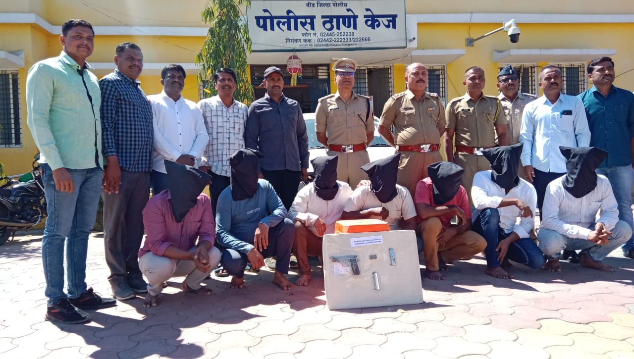 दिनांक 20/02/2024 रोजी मा सहायक पोलीस अधीक्षक केज श्री कमलेश मीना साहेब यांना गुप्त बातमी दारामार्फत बातमी मिळाली आहे की, काही इसम हे हमरस्त्यावर लुटमार करण्याच्या उद्देशाने अंबाजोगाई कडुन नेकनूर कडे एक पांढ-या रंगाची सुझुकी कंपनीची ईटींगा चारचाकी गाड़ी क्रमांक MH-46-CM-1934 मध्ये बसुन येत अशी बातमी मिळाल्याने त्यांनी त्यांचे कार्यालयातील पोना विकास चोपने, पोना अनिल मंदे, पोना दिलीप गित्ते, पोकों अशपाक ईनामदार, पोह मुंबे तसेच पोलीस स्टेशन केज येथील पोउपनि शिंदे साहेब, पोकां/शहादेव म्हेत्रे, पोकों महादेव बहिरवाळ, पोकों प्रकाश मुंडे यांना सोबत घेवुन केज शहरामध्ये केज ते अंबाजोगाई रोडवर, तांबवेश्वर मेडीलक समोर रोडवर सापळा लावुन अंबाजोगाई कडुन येणाऱ्या पांढऱ्या रंगाची ईटींगा गाडी क्रमांक MH-46-CM-1934 हिस आडवुन गाडीतील इसमांना ताब्यात घेवुन पोलीस स्टेशन केज येथे आणुन सदर इसमांची व गाडीची झडती घेतली असता सदर इसमांच्या ताब्यात एक देशी बनावटीचा गावठी कट्टा, पाच जिवंत काडतुस, एक रिकामी मॅग्झीन व गाडीमध्ये मध्यल्या शिटखाली एक लोखंडी रॉड, डिक्कीमध्ये एक लोखंडी रॉड, एक लोखंडी स्क्रू ड्राव्हर व एक लाकडी दांडका मिळुन आल्याने ते जप्त करण्यात आले आहेत. ताब्यात घेतलेल्या इसमांची नावे 01) गणेश भोसले, रा. यशवंतराव चव्हाण चौक, अंबाजोगाई ता. अंबाजोगाई जि. बीड, 02) हरीष तोमर देवडीगा, रा. बजेगली ता. कारकला जि. उडपी राज्य कर्नाटक ह. मु डोंबीवली, मुंबई जि. मुंबई, 03) नारायण मंगळा करण, रा. महेशा ता. कृष्णप्रसाद जि. पुरी राज्य ओडीसा ह.मु. सायन मुंबई, 04) श्रीनिवास आशाअली बारगम, रा. संत ज्ञानेश्वर नगर गर्व्हमेंट कॉलनीच्या बाजुला बांद्रा पूर्व मुंबई, 05) श्रावण शिवाजी गायकवाड, रा. बोरीवली मुंबई, 06) दिपक दशरथ चाटे ऊर्फ ताठे, रा. धर्मनाका कामगार नगर-2 मुंबई, 07) नामदेव परसू पोवार, रा. कामोठा नवी मुंबई ता. पनवेल जि. रायगड असे असुन सदर 07 आरोपी पोना/विकास चोपने यांचे फिर्यादी वरुन केज पोलीस स्टेशन येथे कलम 399 भादविसह कलम 3/25 भारतीय हत्यार कायदा नुसार गुन्हा नोंद करण्यात आला आहे. सदर गुन्ह्यातील आरोपी गणेश पांडुरंग भोसले यासह इतर सुध्दा अंबाजोगाई, मुंबई, ठाणे शहरामध्ये दरोडा, खुनाचा प्रयत्न, जबरी चोरी यासारखे गंभीर गुन्हे दाखल आहेत.