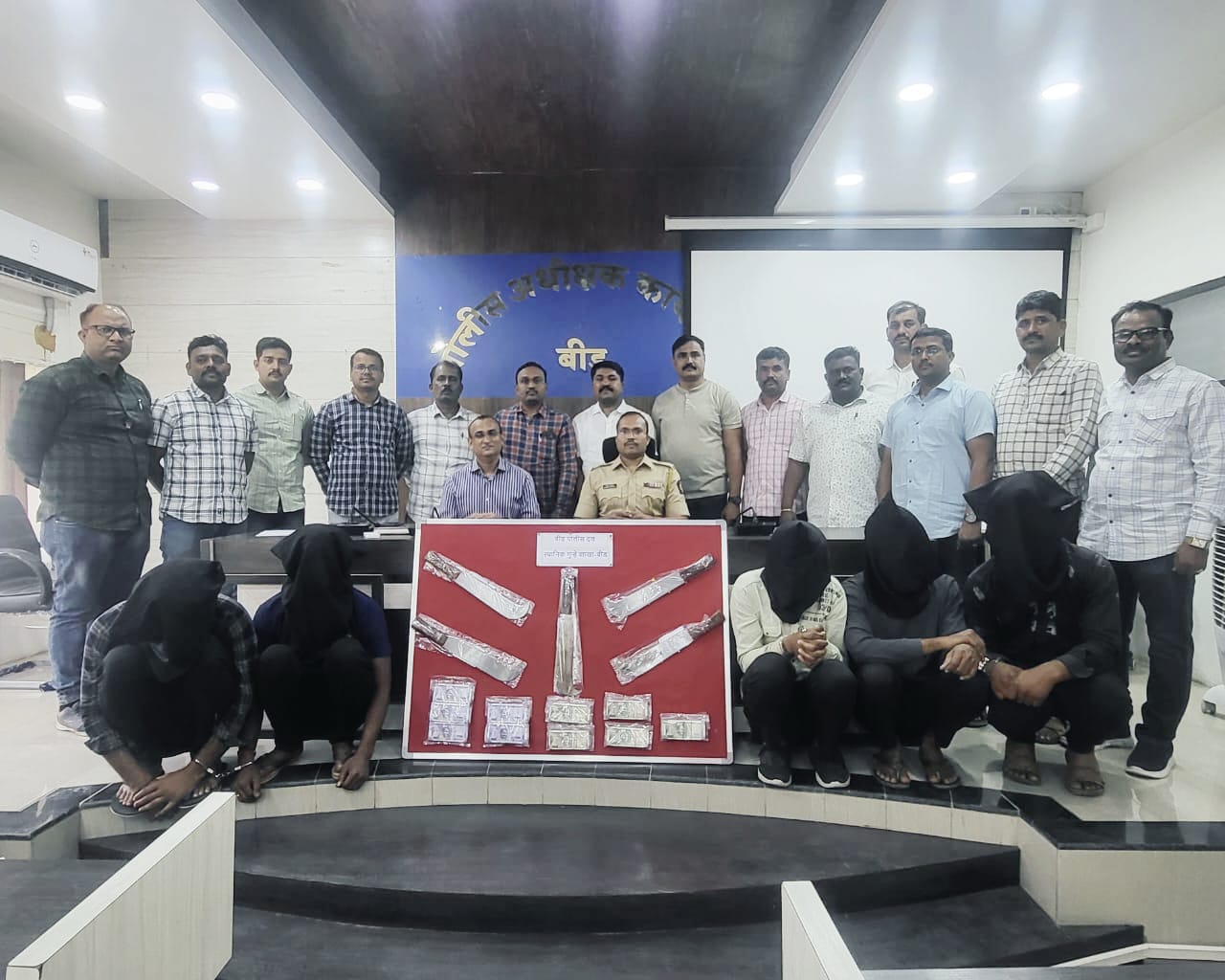 दरम्यान या प्रकरणी गुन्हा दाखल होताच स्थानिक गुन्हे शाखेचे पथकाने जिल्हा पोलीस अधीक्षक नंदकुमार ठाकूर, अप्पर पोलीस अधीक्षक चेतना तिडके, सहाय्यक पोलीस अधीक्षक कमलेश मीना यांच्या मार्गदर्शनाखाली स्थानिक गुन्हे शाखेचे पोलीस निरीक्षक साबळे, पोलीस उपनिरीक्षक राडकर आणि त्यांच्या पथकाने गुप्त माहिती काढली. या पथकाला एका गुप्त महितीगाराने दिलेल्या माहिती वरून स्थानिक गुन्हे शाखेचे पोलीस निरीक्षक साबळे, पोलीस उपनिरीक्षक राडकर, पोलीस उपनिरीक्षक सुशांत सुतळे, पोलीस जमादार राजू पठाण, तुळशीराम जगताप, बाळकृष्ण जायभाये, अर्जुन यादव, मारुती कांबळे, रामदास तांदळे अतुल हराळे, राहुल शिंदे, पी टी चव्हाण आणि जायभाये यांच्या पथकाने पेट्रोल पंपाच्या दरोड्यातील आरोपीची गुप्त पद्धतीने माहिती काढून विकास सुभाष सावंत (रा. सावंतवाडी, उमरी फाटा ता. केज), अजय उर्फ अज्जू अशोक तांदळे (रा. कोरेगाव ता केज), सोमनाथ राजाभाऊ चाळक (रा. लव्हूरी ता. केज), बालाजी राम लांब (रा कोरेगाव ता. केज), रवी उर्फ आण्णा दत्तात्रय सुर्यवंशी (रा. पिसेगाव ता. केज) यांना ताब्यात घेतले आहे त्यांच्याकडून पेट्रोल पंपाच्या दरोड्यातील २ लाख रु. आणि गुन्ह्यात वापरलेले५ कोयते, २ मोटार सायकली व इतर साहित्य ताब्यात घेतले आहे.
