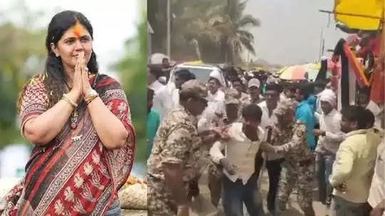 पंकजा मुंडे यांच्या गाडीसमोर घोषणा देणाऱ्या मराठा अंदोलकावर गुन्हे दाखल.