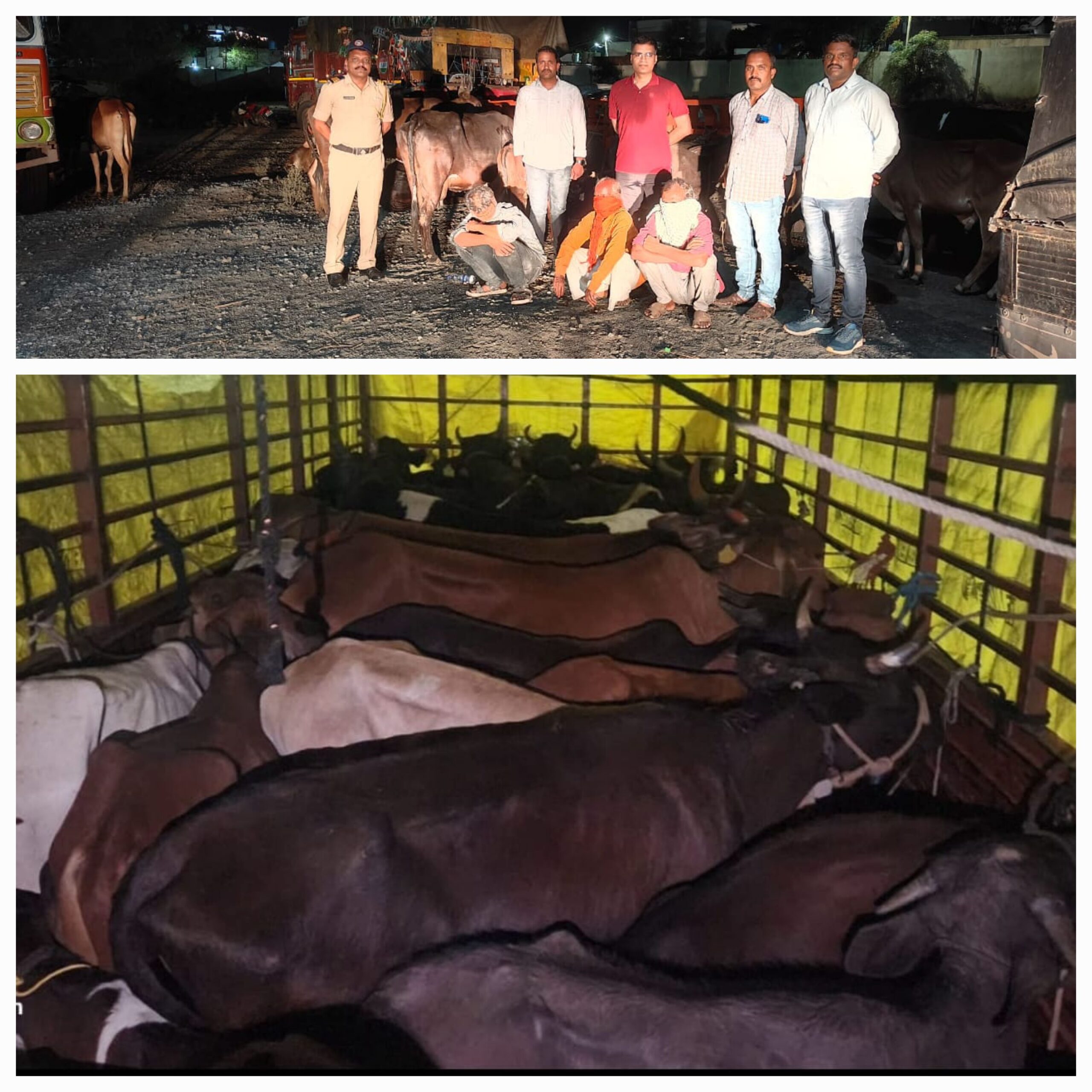 सविस्तर वृत्तांत असा की काल दिनांक 18.04.2024 रोजी सहा. पोलीस अधिक्षक, उपविभागीय पोलीस अधिकारी, उपविभाग केज यांना गुप्त बातमीदारामार्फत माहिती मिळाली की, एक आयशर पासींग क्रमांक एम.एच.04 जी.सी. 8523 यामध्ये गोवंश जातीचे जनावरे भरुन ती कत्तलीसाठी बेकायदेशिर रित्या साळेगाव कडुन केज कडे अवैद्य वाहतुक करित आहे अशी माहिती मिळाल्यावरुन सहा. पोलीस अधीक्षक, श्री. कमलेश मीना यांनी पथकातील दिलीप गित्ते, पोलीस नाईक विकास चोपने, अनिल मंदे, चालक पोलीस हवालदार माने यांना सदर वाहन ताब्यात घेवुन कायदेशिर कारवाई करणे बाबत आदेश दिल्याने वर नमुद पथकातील पोलीस अंमलदार यांनी चिंचोळीमाळी फाटा येथे थांबले रात्री 9.30 वाजण्याचे सुमारास टेंम्पो येताच वाहन ताब्यात घेतले, वाहनाचे चालक यास त्याचे नाव गाव विचारले असता त्याने त्याचे नाव अमजद सत्तार तांबोली रा. कोकचपिर ता. केज जि.बीड असे सांगीतले तसचे गाडीतील लोकांना त्यांचे नाव गाव विचारले असता त्यांनी त्यांचे नाव सलमान अमजद पठाण, रा. टिपु सुलतान चौक, केज ता. केज जि.बीड (क्लीनर), बाबासाहेब पंढरीनाथ दळवी, रा. दळवी वस्ती केज, सदरच्या वाहनाची पाहणी केली असता त्यामध्ये 04 गाई, 08 कालवड, 08 गोरं, 02 हल्या, 02 जर्सी गाईचे वासरं असे एकुण 6,17,000/- रूपयाचे जनावरे मिळुन व 10,0000/- रुपये किंमतीचे आयशर जप्त करुन असा एकुण 16,17,000/- रुपयाचा मुद्देमाल जप्त करुन अमजद सत्तार तांबोली रा. कोकचपिर ता. केज जि.बीड (चालक), सलमान अमजद पठाण, रा. टिपु सुलतान चौक, केज ता.केज जि.बीड (क्लीनर), बाबासाहेब पंढरीनाथ दळवी, रा. दळवी वस्ती केज (व्यापारी), लायक ईस्माईल खुरेशी, (व्यापारी), बीलाल अजीब खुरेशी, साबेर सत्तार खुरेशी, आरोपी अंबाजोगाई जि. बीड येथील असून अजीम नशीब पठाण, रा. रोजामोहल्ला ता. केज जि.बीड, यांचेविरुध्द वरील वर्णनाचे व किंमतीचे गोवंश जातीचे जनावरे क्रुरतेने निर्दयीपणे क्षमतेपेक्षा जास्त भरुन आयशर टँम्पोमध्ये भरुन त्यांची कत्तल करण्यासाठी घेवुन जात असतांना मिळुन आल्याने वर नमुद आरोपीविरुध्द पोलीस नाईक दिलीप गित्ते यांचे फिर्यादीवरुन पोलीस ठाणे केज येथे गुन्हा दाखल करण्यात आला आहे.