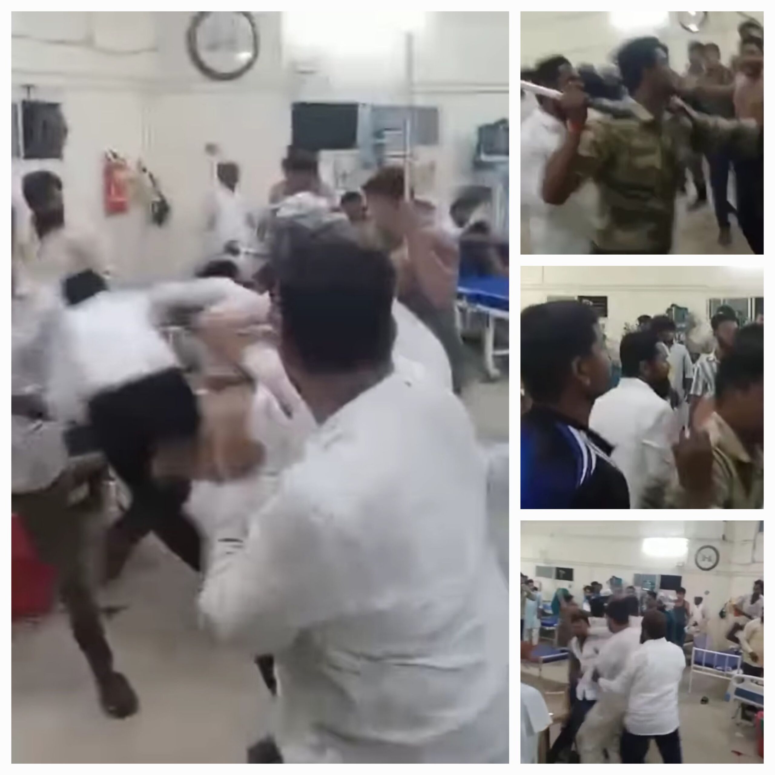 त्यात तेथील डाॅक्टर, नर्सेस व कर्मचारी जिव मुठीत घेऊन बसले , तिथे उपचारार्थ असलेले पेशंट घाबरून गेले अश्यातच तेथील सुरक्षारक्षकाने मध्यस्थी करून मारहाण करणाऱ्याना चांगलाच चोप दिला तेंव्हा कुठे परस्थिती नियंत्रणात आली.