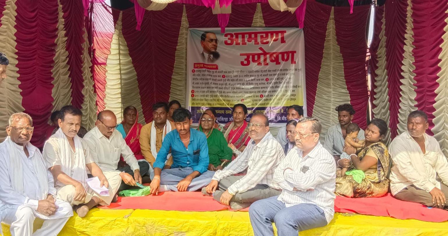 परळी प्रतिनिधी. परळी पासून जवळच असलेल्या मौजे दाऊतपूर येथील बौद्ध समाजाच्या तरुणांना जातीवाचक शिवीगाळ करून मारहाण झाल्याची घटना पंधरा दिवसापूर्वी घडली होती. याप्रकरणी आरोपीविरुद्ध अट्रॉसिटीसह इतर गुन्हे दाखल करण्यात आले होते. या ॲट्रॉसिटी प्रकरणातील सर्व आरोपी अद्याप मोकाट फिरत आहेत. परंतु पोलिसांनी आरोपीशी संगणमत करून उलट बौद्ध समाजातील तरुणावरच आणि सामाजिक कार्य करणाऱ्या शिक्षकावर खोटे 395 यासारखे दरोड्याचे व इतर गुन्हे दाखल केल्याने बौद्ध समाजात संतापाची लाट उसळली आहे. सदर खोटे गुन्हे रद्द करावे अन्यथा पोलिसांच्या विरोधात तीव्र आंदोलन करण्याचा इशारा बौद्ध संघर्ष समिती, वंचित बहुजन आघाडी व इतर आंबेडकरवादी पक्ष आणि संघटनांनी दिला आहे. तर गेले दोन दिवसापासून दाऊतपूर येथील बौद्ध समाजाच्या महिला व पुरुष उपविभागीय कार्यालयासमोर झालेल्या अन्यायाविरुद्ध न्याय मागण्यासाठी उपोषणाला बसलेल्या आहेत.