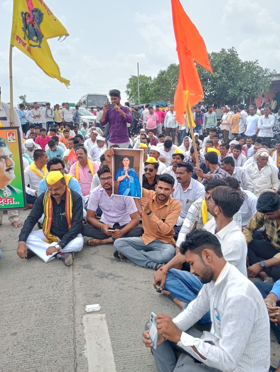 डोणगाव फाट्यावर ओबीसींचा रस्ता रोको,टायर्स जाळून महामार्ग आडवला