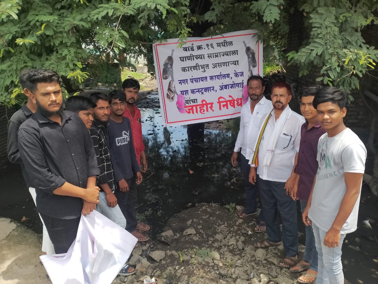 मागासवर्गीय वार्डात घाणीचे साम्राज्य ; बॅनरवर चपलांचा हार लाऊन केज नगरपंचायत व यश कन्स्ट्रक्शनचा केला निषेध !